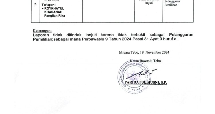 JP Tebo Putusan Bawaslu Tebo yang menyatakan salah satu PPS Didesa Sungai Rambai yang bernama Baca Selengkapnya Disini