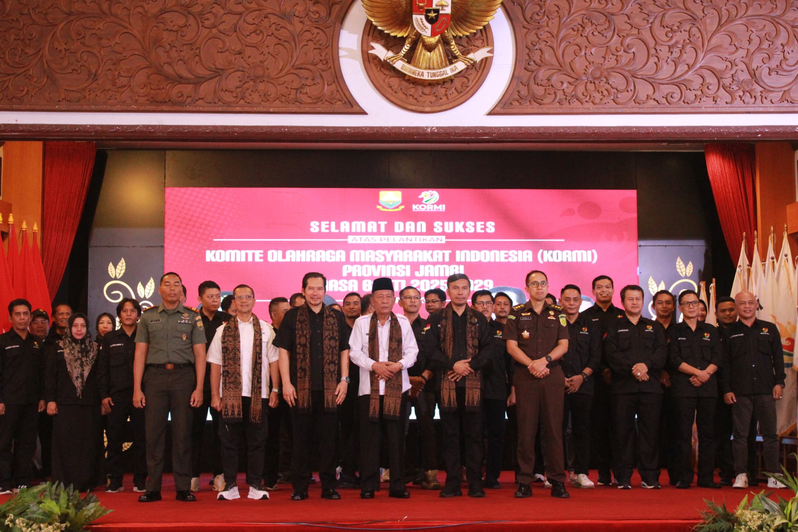 JP Jambi – Wakil Gubernur Jambi Drs. H. Abdullah Sani, M.Pd.I menghadiri pelantikan Pengurus Komite Olahraga Masyarakat Indonesia (KORMI) Provinsi Jambi Masa Bakti 2025-2029 bertempat di Auditorium Rumah Dinas Gubernur, Rabu (16/04/ 2025). Ketua Umum (Ketum) KORMI Nasional Adil Hakim secara resmi melantik KORMI Provinsi Jambi yang diketuai oleh Edi Purwanto, sekaligus melakukan penandatanganan berita acara pelantikan.